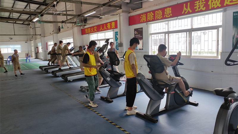 在惠州市强制隔离戒毒所的教育矫正中心,两名授课志愿者先后讲授民法典和体能康复训练相关知识,他们采取“理论联系实践”的授课方式,在科普知识的同时增强了课堂趣味性。随后,在心理咨询中心的团体心理咨询室,志愿者们与围坐在一起的强制隔离戒毒人员亲切交谈,并利用沙盘工具,设法打开强制隔离戒毒人员的心防,进行心理疏导和心理干预。在康复训练中心,两名男性志愿者为正在训练的强制隔离戒毒人员示范了标准的训练动作,并叮嘱强制隔离戒毒人员在训练中注意监测心率的变化,循序渐进,不要一开始就从事剧烈的运动。