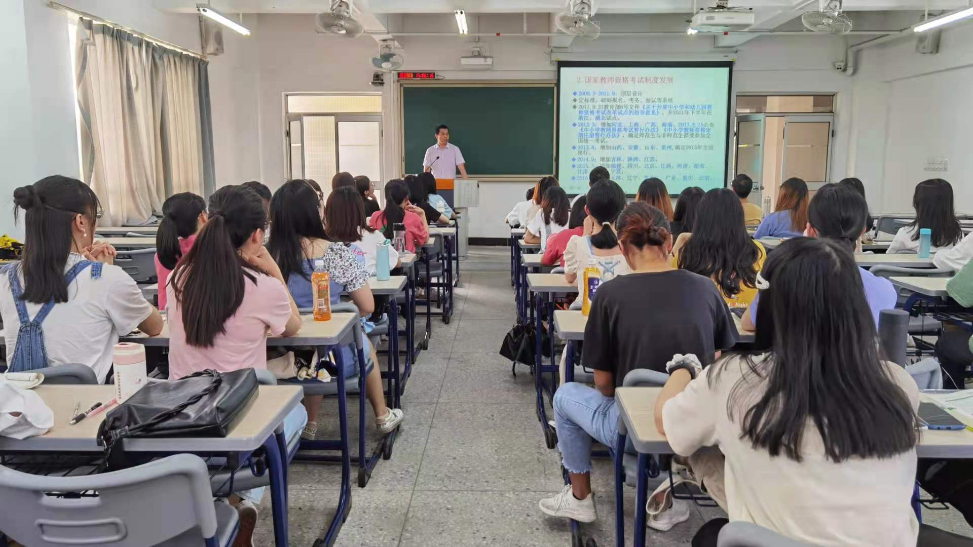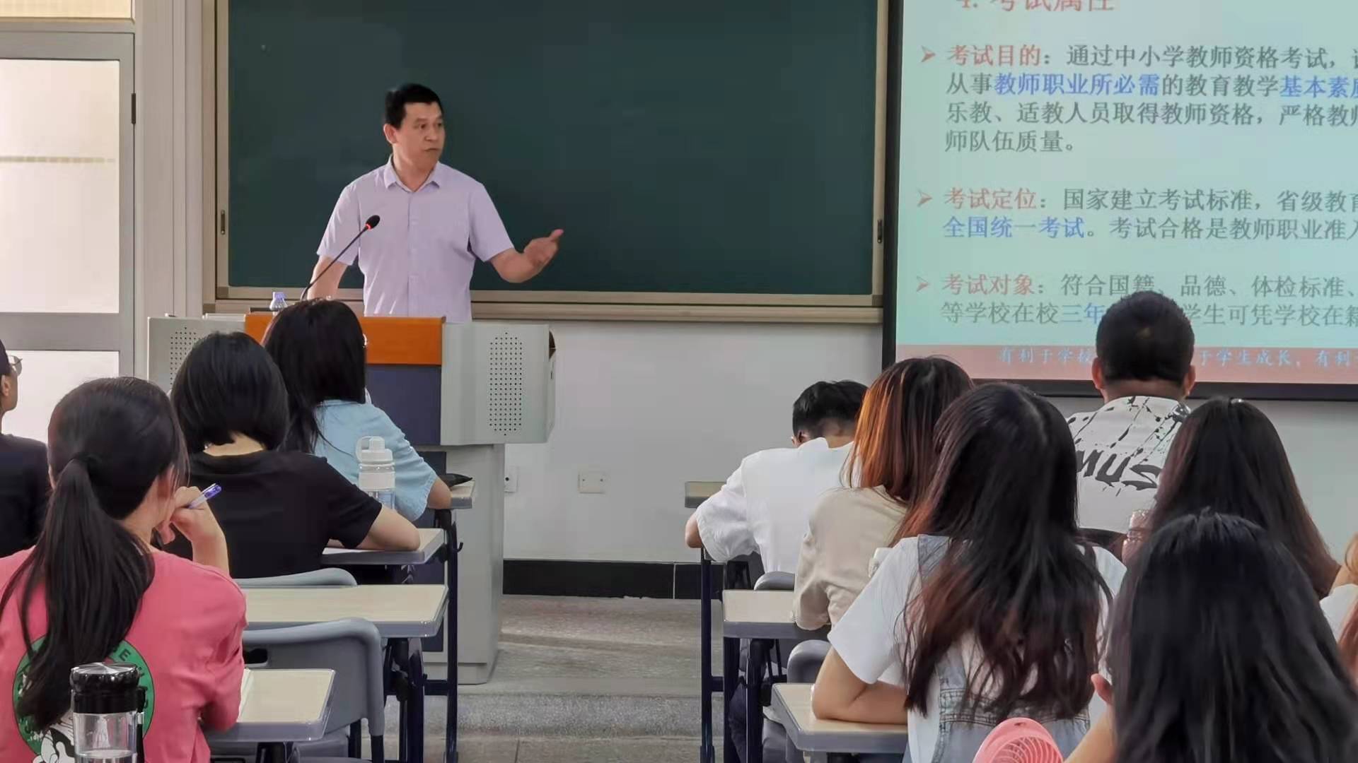 班主任刘惠茹老师作出了总结发言,对黄老师的精彩讲课和辛勤付出表示衷心的感谢,要求同学们认真消化今天的学习内容,同时不仅要树立通过教师资格证面试的短期目标,更要立足于不断提升自我、培养自己成为立德树人的优秀教师的长期目标。培训会在欢声笑语、热烈的掌声中结束。