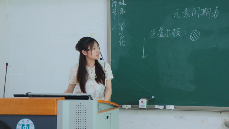 讲课决赛分为教学设计文稿及课件制作、模拟授课环节和现场答辩三个部分,首次采用国赛现场抽题制作课件的形式,对于师范生技能训练提出了更高的要求。比赛邀请了校内校外专家共同参与指导。参赛学生从教学目标、内容、方法、过程、素质、效果、创新及板书设计等多方面对选手进行综合考核。在授课环节,参赛选手准备充分,语言表达准确,对氧化还原反应或者元素周期表等化学知识进行了精彩讲解。在答辩环节,部分选手从容应对评委老师们的提问。参赛选手们流畅的讲解,整齐的板书,端庄大方的仪态,充分展现了我院学子过强的教学技能和教师风采。