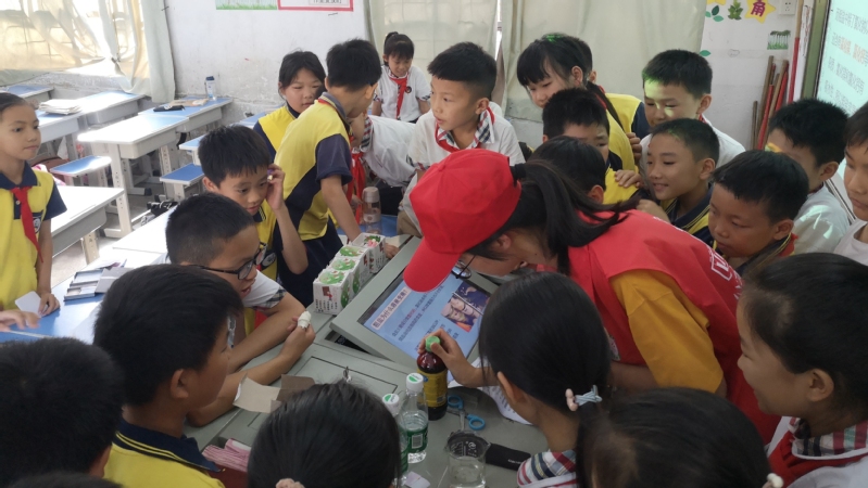 课上,每一位同学端坐在位置上专心致志地聆听志愿者们的讲解,紧跟着“小老师们”的步伐学习如何保护自然,了解生活中奇妙的化学反应。小学生们积极与志愿者互动,争相地回答问题,提出疑问,志愿者们妙趣横生的科普课堂与同学们的奇思妙想形成了有趣的化学反应,融洽的课堂氛围使义教课堂开展得格外顺利。