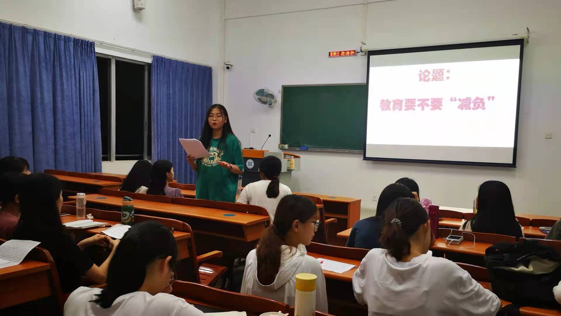 最后,任翠莲老师进行了总结。她指出此次的话题讨论为开放性话题,没有对错,并对本次沙龙活动同学们的充足准备及独到的个人感悟以及流畅的表达表示认可。她认为“减负”的措施必须“因材施教”,要对症下药,要“减”到实处。并寄语同学们要树立远大的理想,不断提升自身的师德修养和专业技能,主动“负重”前行,再接再厉,为建设教育强国奉献出自己的一份力量。