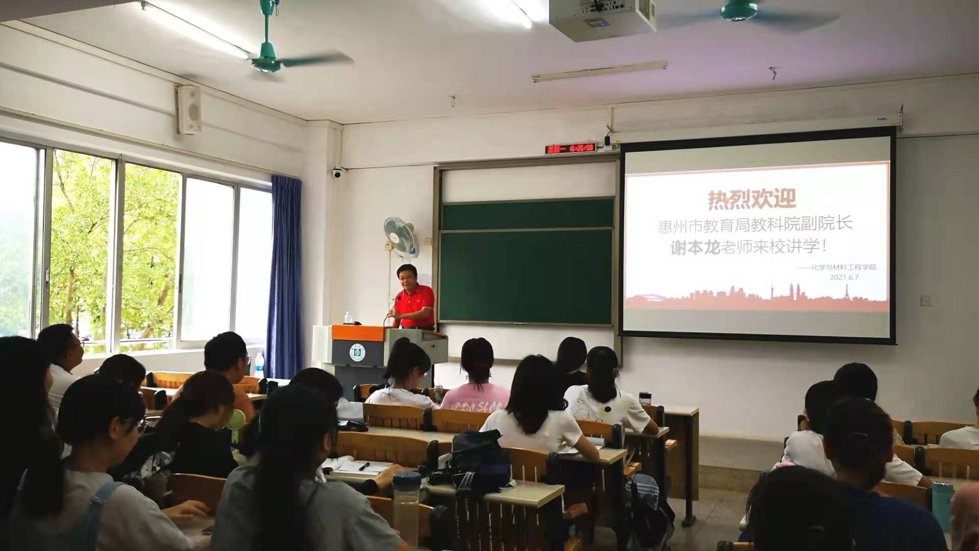 本网讯 为培养我院师范生教育教学专业素养,2021年6月7日下午,化学与材料工程学院邀请惠州市教育局教科院副院长谢本龙老师来校为卓越化学教师班全体同学做了一个专题讲座——“一节好课的标准解读”。讲座由卓越化学教师班(第三届)班主任任翠莲老师主持。