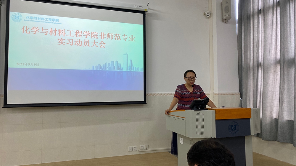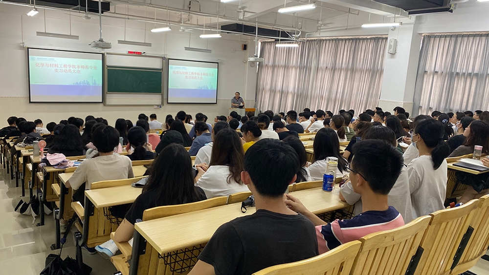 为使同学们进一步明确实习目的,了解实习要求,提升实习质量,为同学们顺利就业以及未来发展奠定基础,9月9日下午,化学与材料工程学院在教学实验大楼106室召开了2018级非师范专业实习动员大会。出席本次大会的有学院副院长封科军、大亚湾研院常务副院长刁贵强、高分子材料与工程系主任陈鸿雁、应用化学系主任卢明、化工系主任邱思、各实习单位指导老师、教务员、负责毕业班辅导员以及2018级全体非师范专业学生。本次动员大会由化工系主任邱思博士主持。