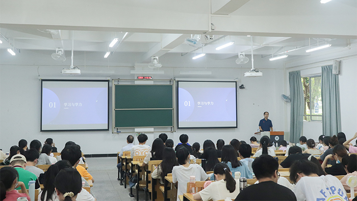 本网讯 9月23日下午,惠州一中下埔校区副校长中学化学高级教师吴超应化学与材料工程学院邀请,在旭日楼118课室做了题为“初中,初衷”的讲座,讲座由学院封科军副院长主持,化学与材料工程学院老师代表,2018级化学师范班学生以及19级部分师范班学生参加讲座。