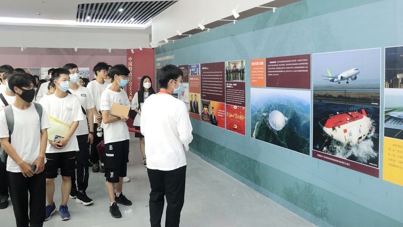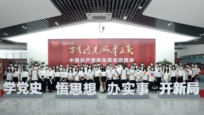 最后,师生前往科技楼A座一楼一起参观了“百年恰是风华正茂”党史宣传展。在学生宣讲员陈星宇同学的领学下,同学们重温了中国共产党百年光辉党史,深受教育和启发。吃水不忘挖井人,中国共产党人的伟大精神将激励着团学干部们,不断增强四个意识,坚定四个自信,做到两个维护,树立远大理想,锤炼品德修养,从身边小事做起,从服务同学们和老师做起,让青春之花在人民需要的地方绽放绚烂光彩。