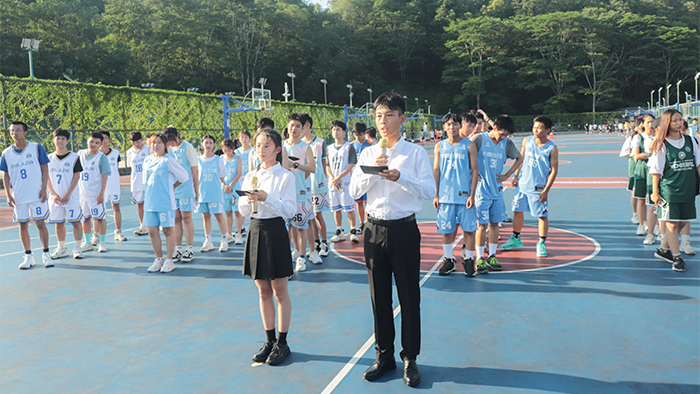 开幕式上,团总支副书记蓝杰怡代表学院团总支向开幕式致辞,她对此次篮球赛的举办给予肯定,班级篮球赛是我院大学生素质能力提升计划之身心素养提升工程中的重要子项目,对我院学生的身心健康发展有良好的促进作用,通过体育锻炼,促使同学们“走出宿舍、走下网络、走向操场”。蓝杰怡希望各参赛队伍可以赛出水平,赛出风格,赛出友谊;希望裁判员本着“公平、公正、公开”的原则,严肃、认真、准确地执行裁判工作;希望赛事工作人员能够精心组织,努力工作,热情服务,将篮球赛办成团结有爱、拼搏奋进的盛会。伴随着裁判员温宁的宣誓,本届篮球赛正式开始。
