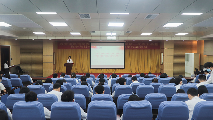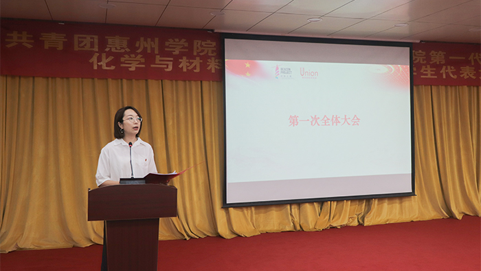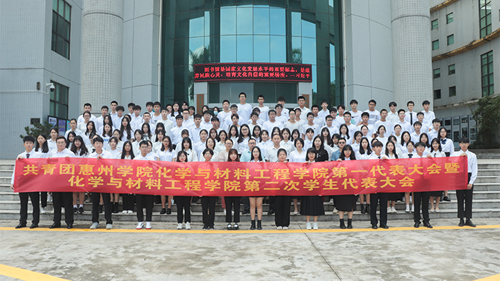 本网讯 2021年10月16日,共青团惠州学院化学与材料工程学院第一次代表大会暨化学与材料工程学院第二次学生代表大会(以下简称:化学与材料工程学院第一次“双代会”)在图书馆学术报告厅顺利举行。学院党总支书记郭爱平、院长刘国聪教授、副院长封科军、思政导师朱庆英、全体辅导员,校学生会代表、校团委代表、兄弟学院来宾应邀出席,学院各系学生代表、团员代表共100余人参加会议。