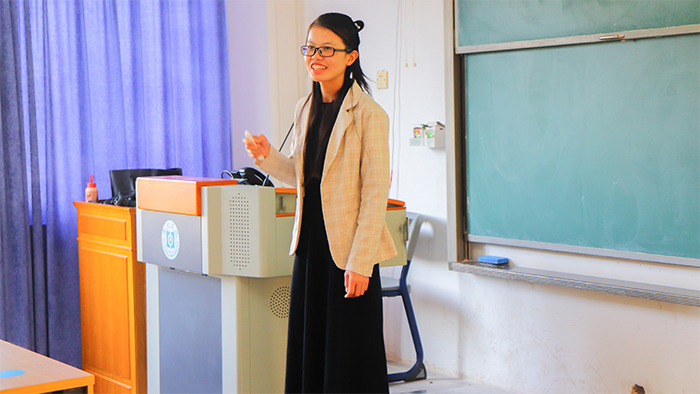 黄丽婷老师分别从四个阶段阐述了如何提升个人素质,促进专业成长。首先是做好大学四年规划。她向同学们介绍了制定大学四年目标的方法,编制教师招聘流程,教师招聘考试具体的准备过程,希望同学们能够找到自己的目标并为之努力。第二,考研备考。她介绍了专业课、数学、英语等科目的具体学习备考方法,为有考研意愿的同学提供了宝贵的经验。第三,她分享了自己的教师生涯。她结合自身教学经验,给同学们提出了在反思中成长,成长中反思的建议,从教师备课、教师观摩听课、教师课堂教学等角度向同学们讲解如何进行有效的反思。