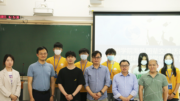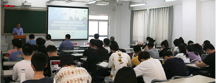 本网讯4月8日下午,由惠州学院国际交流合作处主办,化学与材料工程学院承办的“惠州学院海外朋辈交流活动暨化学与材料工程学院海外留学优秀校友交流会”在旭日楼209课室顺利举行,与会人员有化学与材料工程学院院长刘国聪、应用化学系主任卢明、国际交流合作处孙一文、化学与材料工程学院2019届毕业生陈晓宇及其父亲,2019级50余名学生代表参与此次交流会。本会议由国际交流合作处副处长刁贵强主持。