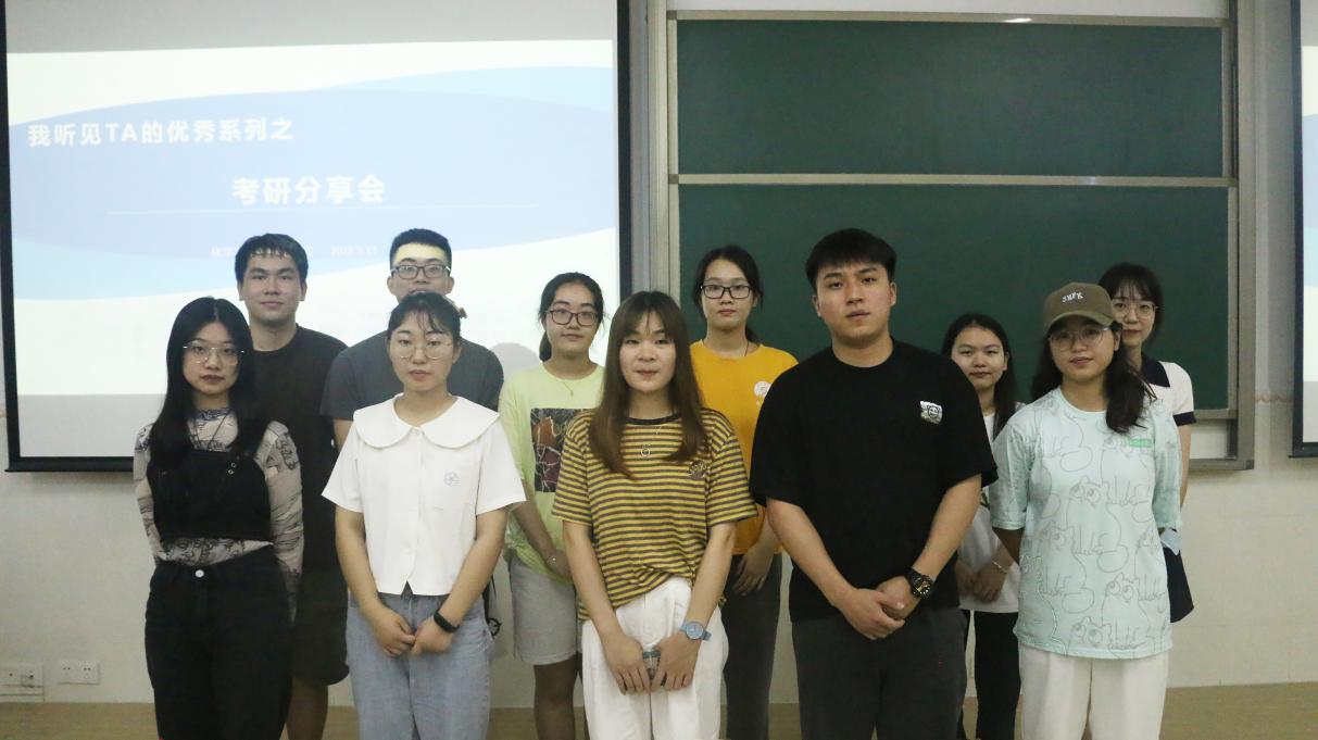 本网讯 为帮助在校生了解考研相关资讯,化学与材料工程学院于2022年5月13日下午在旭日科技大楼B座105课室举办“我听见TA的优秀”之考研分享会。本次考研分享会由学院学生会主办、19应用化学1班承办,2018级孙露、曾龙、黄兰清受邀参加,团总支学生副书记蓝杰怡主持,2019级60余名学生参与。