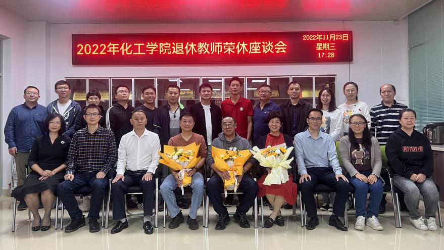 本网讯 2022年11月23日下午4时,化学与材料工程学院在化工楼E503会议室举行退休教职工的荣休座谈会。党总支书记郭爱平,院长刘国聪,副院长封科军、陈鸿雁、刘必富,副处级组织员庄志翔,以及部分学院教职员工参加了座谈会。本次荣休座谈会的主题为“岁月如歌,情怀依旧”,由副院长封科军主持。本次荣休座谈会还特别邀请了谭润志书记。