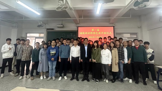 11月26日上午9点,化学与材料工程学院第一届储能新材料特色班(简称特色班)开班仪式在旭日楼310召开。王慧泽老师主持开班仪式,郭爱平书记、刘国聪院长、陈鸿雁副院长、企业代表惠州贝特瑞新材料科技有限公司夏泽民主任、黄茜媛以及特色班的指导老师和学生列席参加,同时邀请夏泽民主任为特色班的学生们讲特色班第一课“锂电池负极材料分享”。