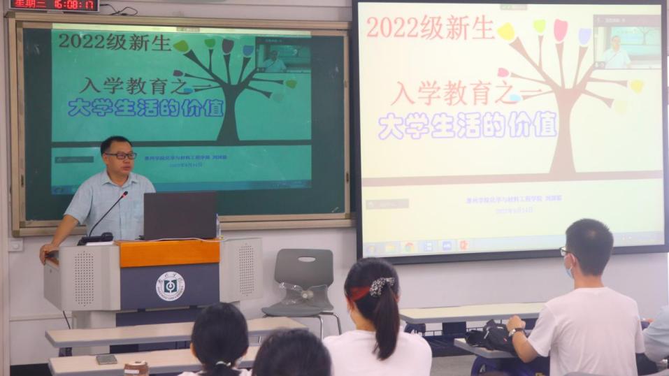 本网讯 金秋9月,2022级大学新生们满怀欢喜来到金山湖畔的惠州学院,化学与材料工程学院于14日下午为新生们开设了开学第一课,本次的宣讲人是化学与材料工程学院党总支书记郭爱平,院长刘国聪教授,参加的有22级全体师生与各班班助。