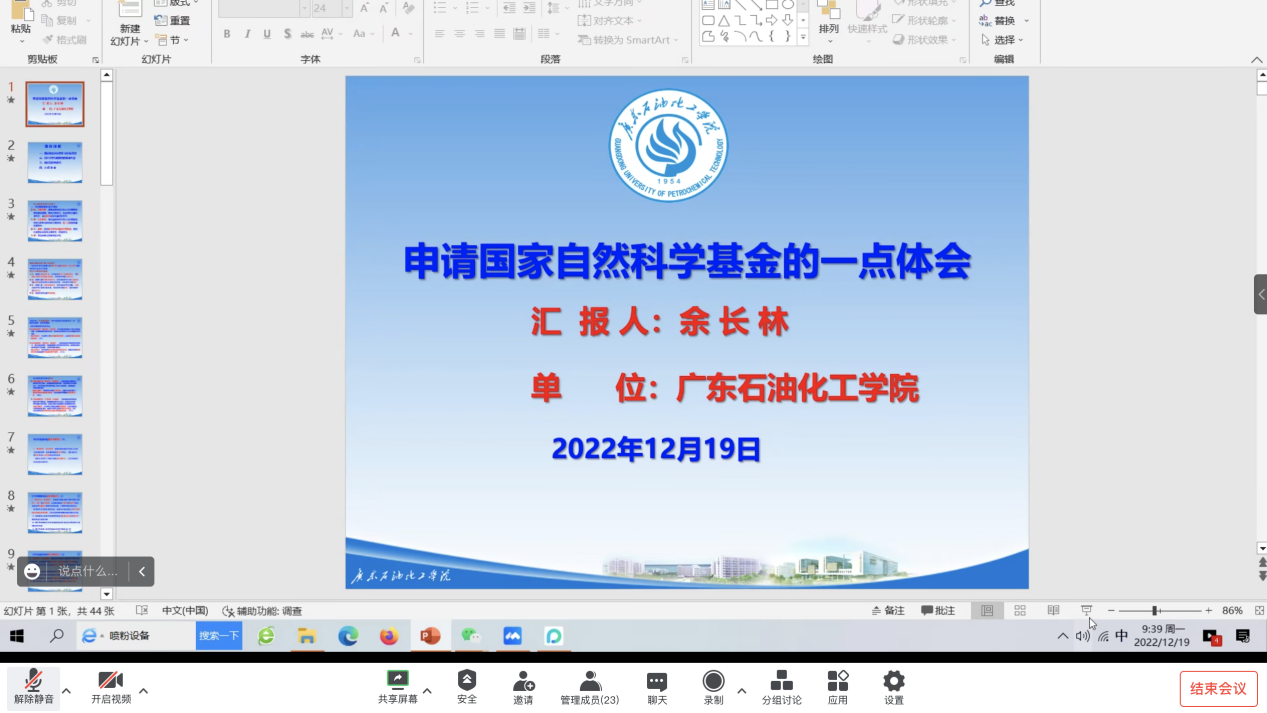 本网讯2022年12月19日上午9时,我院邀请广东石油化工学院余长林教授为学院青年教师做题为《申请国家自然科学基金的一点体会》的线上讲座,由徐德康博士主持,学院青年博士参加了此次线上会议。