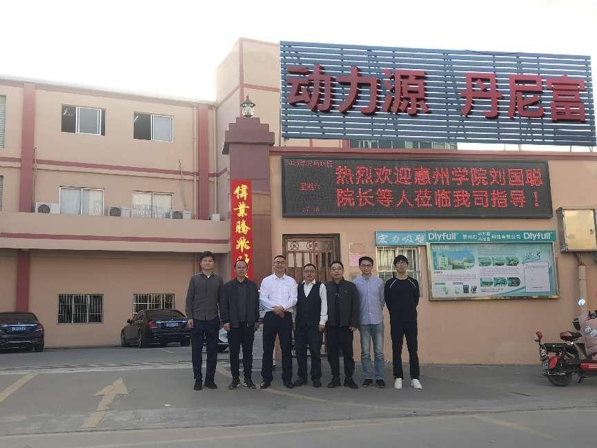 2023年2月18日下午,惠州学院大亚湾化工新材料学院院长刘国聪教授、肖峰博士、李斌博士和吴志梁博士受邀前往惠州市动力源科技有限公司参观交流,双方就产教融合创新基地、能源项目研发、奖教奖助金等内容进行了充分的洽谈。