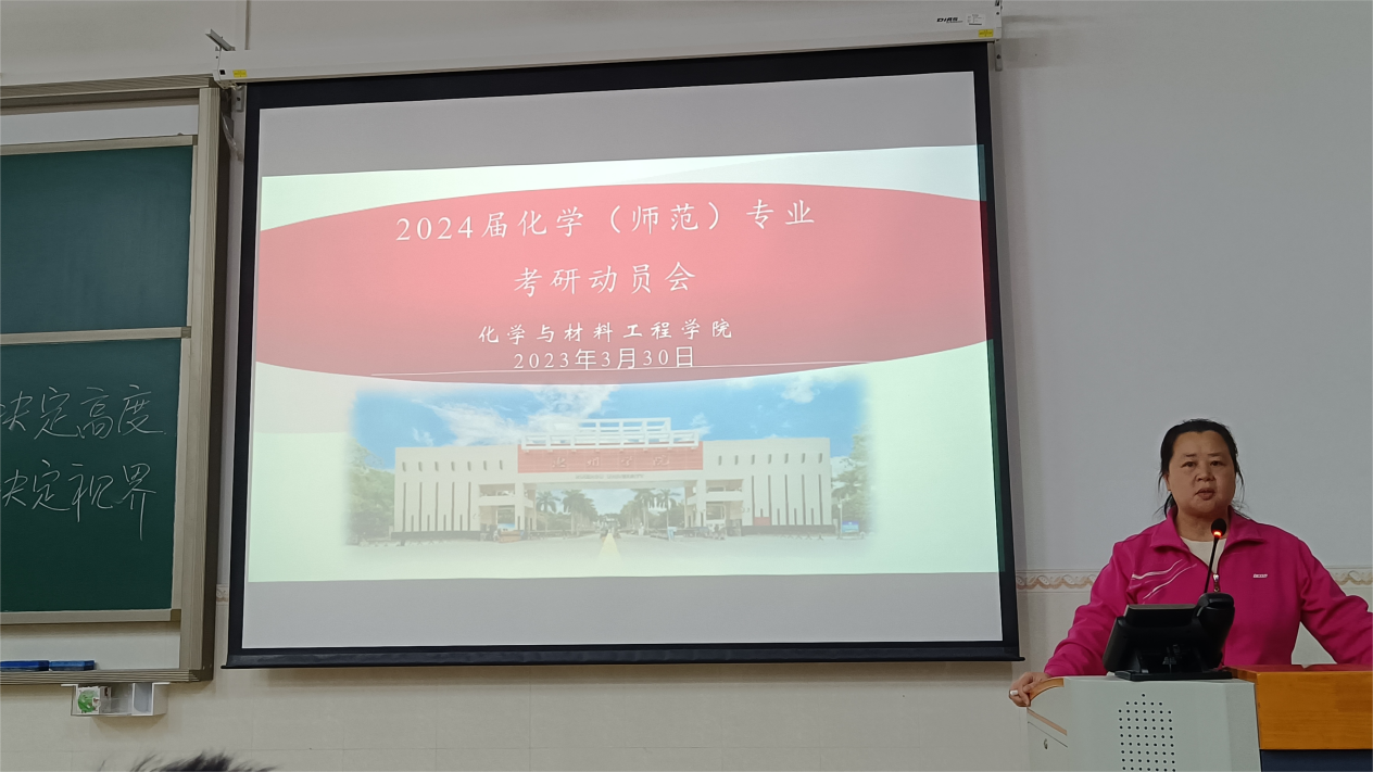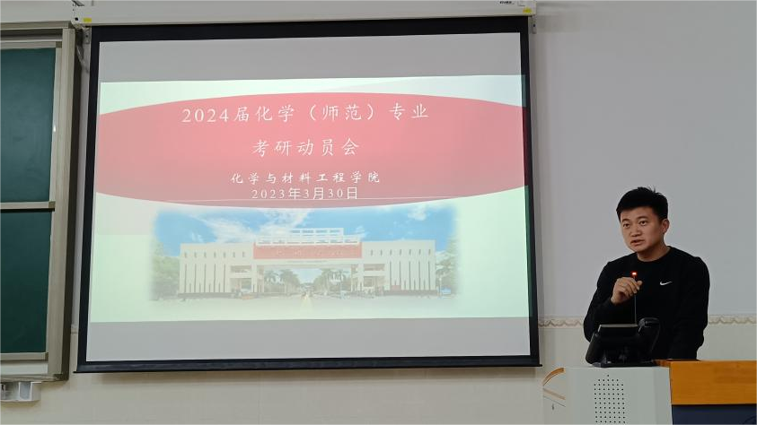 本讯网:3月30日晚,化学与材料工程学院在旭日科技大楼举行2024届化学(师范)专业考研动员大会。会议旨在充分调动我院学生考研积极性,增强考研斗志。出席本次大会的有院长刘国聪、副院长陈鸿雁、党总支副书记张莉琼、化学系主任刘敏、班主任代表朱永娟、黄思勰等老师。2020级100余名学生参加。为了让同学们充分分享考研的宝贵经验,本次大会专门邀请了2019级考研拟录取的三位同学。