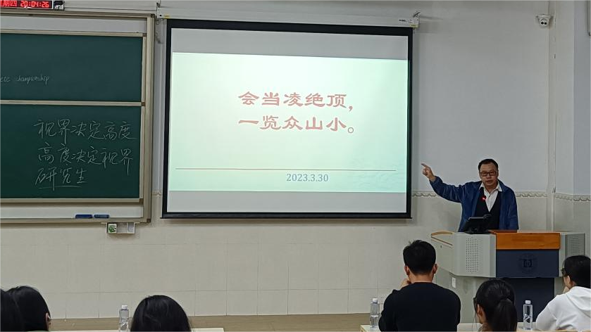 刘国聪院长通过自身求学经历,劝解同学们结合自身实际情况,做出最有利于自身发展的选择,为同学们剖析了人生三个境界,劝诫同学们要披荆斩棘、苦涩坚守、无所畏惧的追求人生理想道路,并希望同学们通过不断提升自身的专业素养和实践创新能力,广泛参与到各类学科竞赛和创新创业项目中,尽早确立未来发展航向,这是一个孤勇者的必经路!陈鸿雁副院长鼓励同学们只有通过不断的自身汲取、总结和提升,才能够达到“视界决定高度”的人生最高境界。黄思勰老师进行了简短而精炼的分享,给考研的同学们给予极大的支持和鼓励。2019级莫莉、庄佳燕和朱小龙同学非常详实的分享了各自的考研经验。张莉琼副书记强调同学们要深刻领会老师们及三位校友的经验分享。