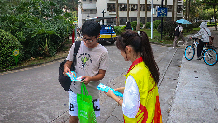 本次宣传活动主要通过发送传单的形式,由学院党总支书记郭爱平、农行投融部总经理曹贤飞携相关负责老师、工作人员和16名学生志愿者,在天桥上、食堂附近给惠院学子们发送反诈传单,并讲述流行的诈骗方式和最近的诈骗案例,科普作为大学生应如何应对此类事件。如今诈骗事件层出不穷,即使大学生身处校内也需要增强自身的反诈意识,并将反诈精神不断传递,形成共同反诈的坚定意识,筑牢防骗安全网。