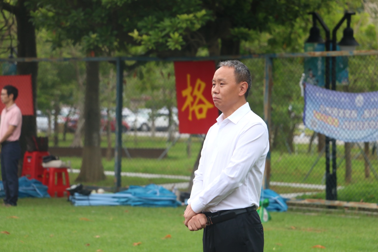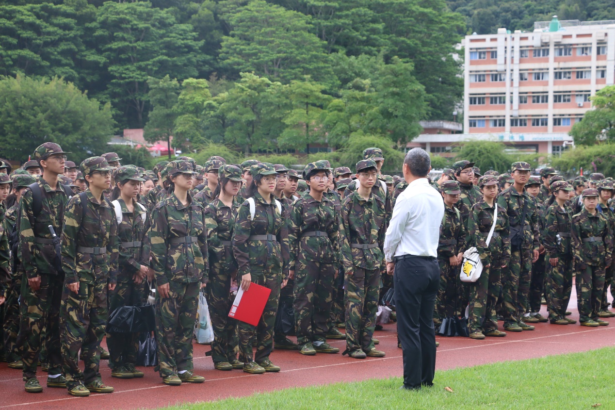 郭爱平书记作开训动员讲话,他勉励同学们,军训是新生入学的必修课,开展必要的军事训练,有助于强化同学们的国防意识,培养团队精神、组织纪律观念、协作意识和坚韧顽强的优秀品质,从而全面提升综合素质。郭书记寄语同学们在军训期间要提高认识,树立爱国主义精神,强健体魄,提高集体主义思想,强化纪律意识,严守纪律,刻苦训练。军训期间时间紧,任务重,体力消耗大,希望同学们妥善安排好饮食和休息,如果有伤、病要及时向班主任、辅导员及教官反映、请假。