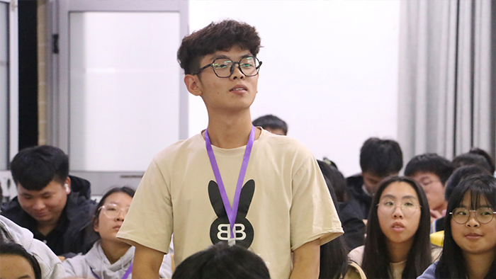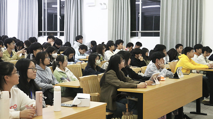 讲座中,团学骨干及青马班学子认真聆听,仔细地做着笔记。在交流答疑环节,有同学提问到“在人少时如何拍到最合适的合照相片”这一问题,王影影老师回答,可以运用多个角度先进行拍摄,如广角镜头、标准镜头等等,直到找到最合适的角度;其次,在拍合影时,要注意背景的留白和对称,使得人物站在画面中央,和谐对称。王老师在讲座尾声提醒道,新闻类摄影要多拍,先有后精,如此摄影能力才能愈发娴熟。