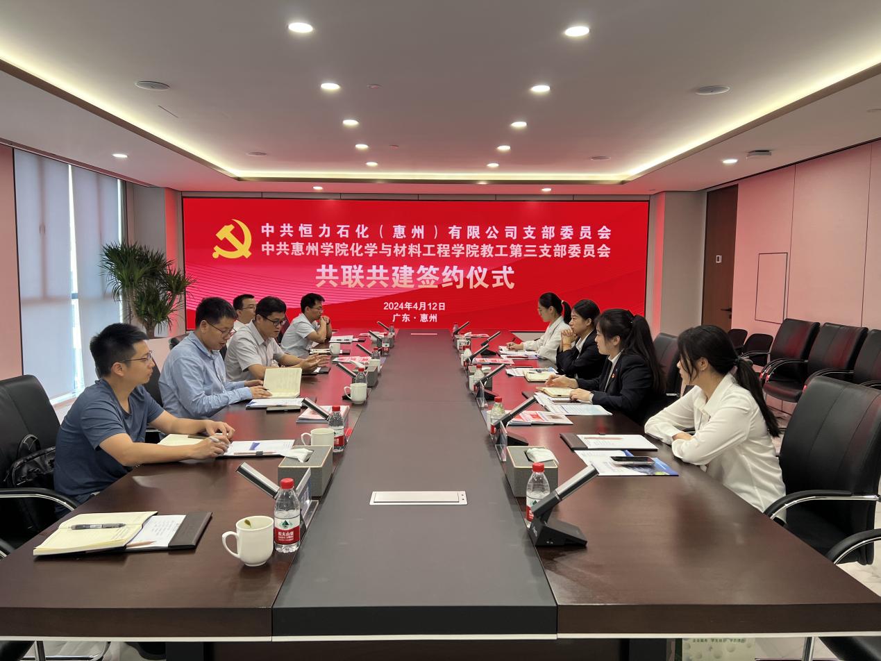 本网讯 2024年4月12日下午,化学与材料工程学院大亚湾化工新材料学院党支部与恒力石化(惠州)有限公司党支部在恒力石化会议室举行了党支部共建签约仪式。双方党支部的党员干部一同见证了这一重要时刻,并由支部书记施岩和李莹分别代表各自党支部在合作协议上郑重签字。此次签约意味着校企双方将围绕党建工作开启深杜合作,并肩前行,共同推动党建事业和企业发展迈上新高度。