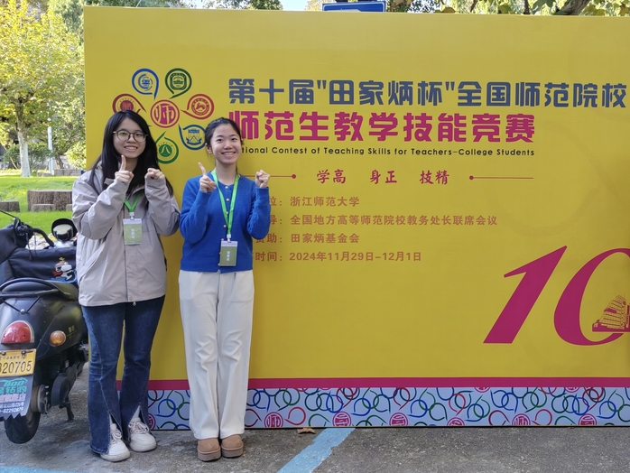 本网讯 2024年11月29日至12月1日,第十届“田家炳杯”全国师范院校师范生教学技能竞赛决赛在浙江师范大学举行。我院学子表现出色,首次有2个学科组别成功入选并斩获佳绩,其中,2021级化学师范专业的陈晓敏同学荣获高中化学组全国二等奖,2022级化学师范专业的熊心竹同学则荣获初中科学组全国二等奖。