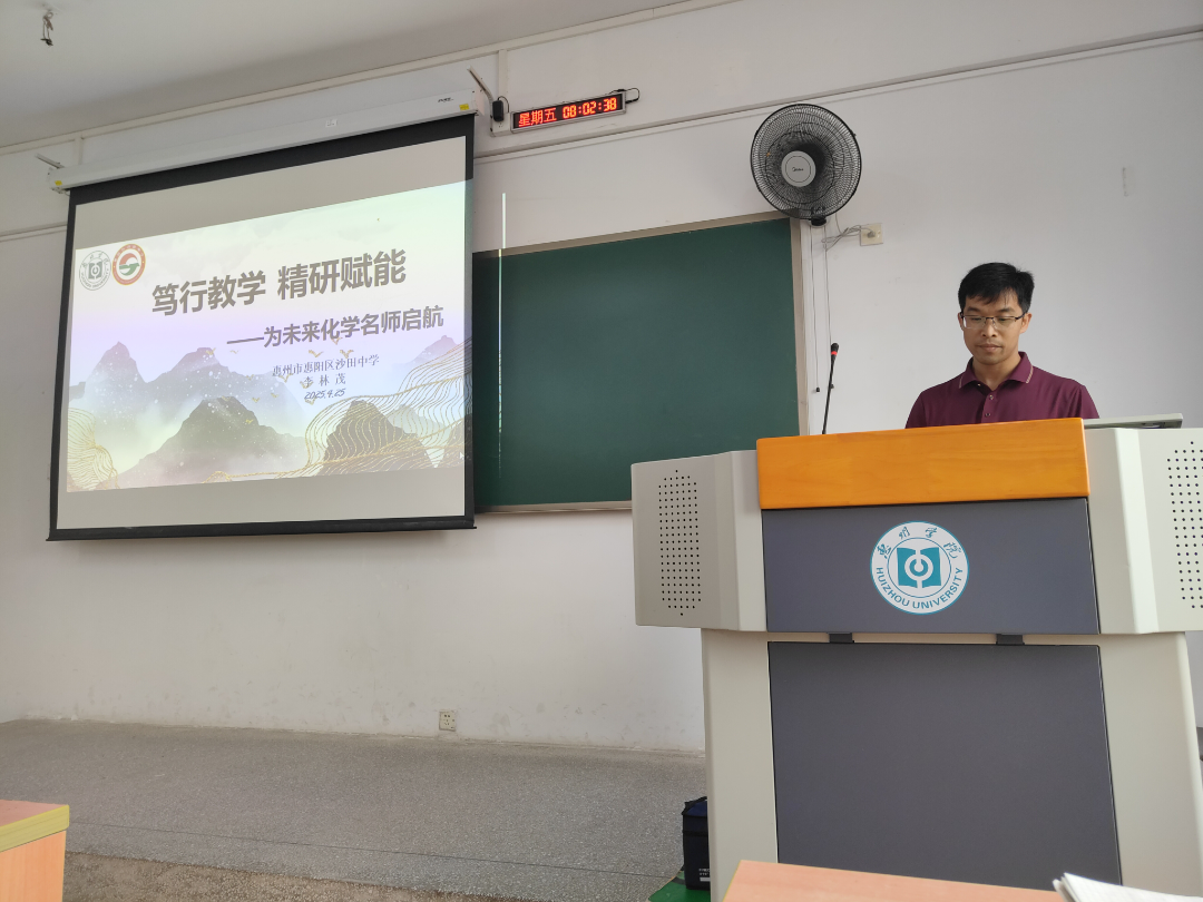 2025年4月25日在旭日教学大楼206教室里,来自惠州市惠阳区沙田中学的李林茂老师以“笃行教学 精研赋能——为未来化学名师启航”为主题给2024级化学(师范)1班的全体同学展开《化学基础教育名师成长之路赏析》的嵌入式课堂。