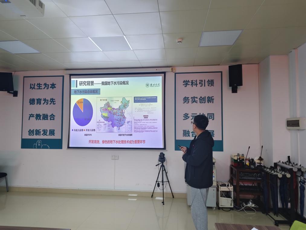 王宇寒博士则针对“基于太阳光/催化剂/过一硫酸盐体系催化氧化水体中有机污染物的研究”进行汇报,展现环境治理领域的科研突破。