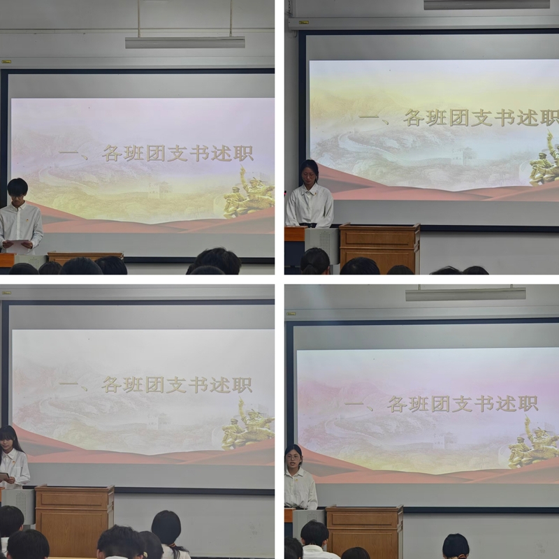会议首先进行团支书述职与评议。各支部团支书围绕本年度工作开展情况、特色亮点、存在问题及下一步计划等方面进行汇报。述职结束后,学生代表结合现场汇报与日常表现,依据评议标准进行评分。