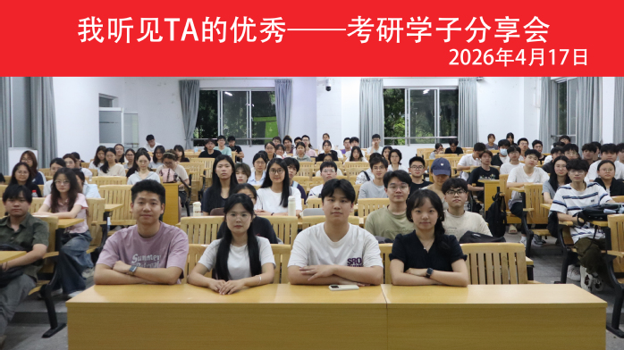 本网讯 为帮助在校生全面了解考研形势、科学规划备考路径,我院于2026年4月17日下午在旭日楼106室举办“我听见了TA的优秀”考研学子分享会。活动邀请钟宝贤、薛子兰、郑佳丽三名在2026年考研中取得优异成绩的学子担任主讲嘉宾,分享实战经验与备考心得。学院辅导员李建媛及众多有考研意向的同学到场聆听。