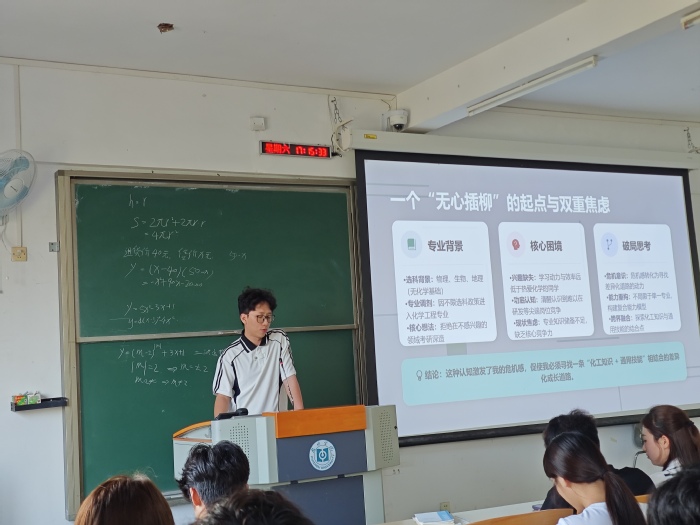 本网讯 为帮助同学们明确职业方向、提升求职技能,学院于4月25日在旭日楼405室举办“我听见TA的优秀”就业分享会。活动邀请2022级应用化学2班张璇、2022级化学2班陈锟庭、2022级高分子材料与工程2班卓嘉豪三位同学,分享求职经验与心得。